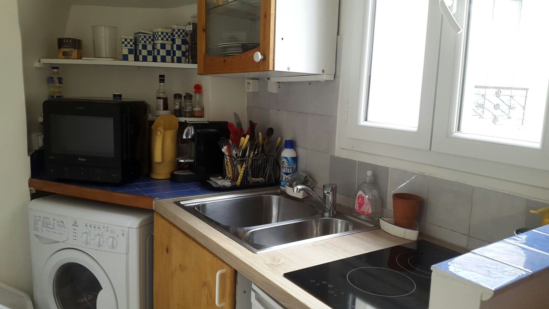 Charmant 2 pièces meublé d'environ 30m², situé au 5ème étage sans ascenseur d'une petite copropriété. Il se compose d'une entrée desservant : wc avec lave-mains, salle d'eau, séjour avec cuisine US équipée, et chambre avec lit double. Au calme sur cour, très lumineux et bien équipé. Rangements, électroménager. Chauffage électrique individuel.